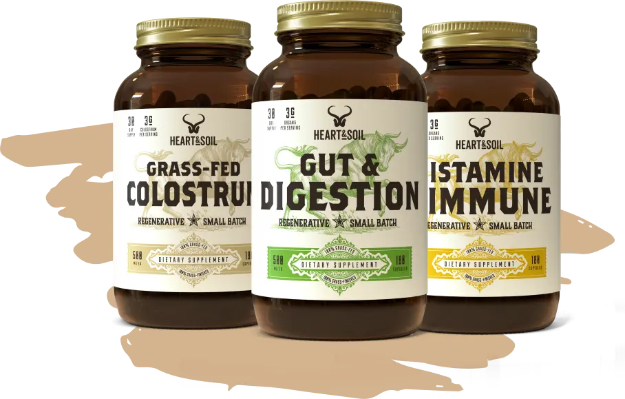 The combined power of Histamine & Immune, Gut & Digestion, Lifeblood, and Grass-Fed Colostrum include essential nutrients.