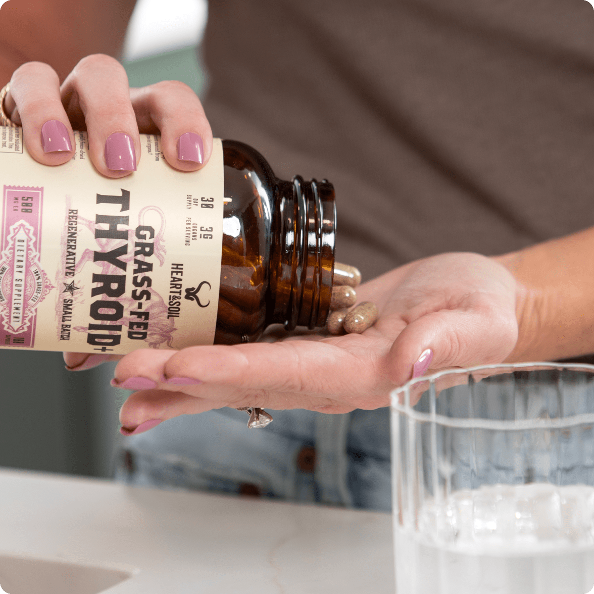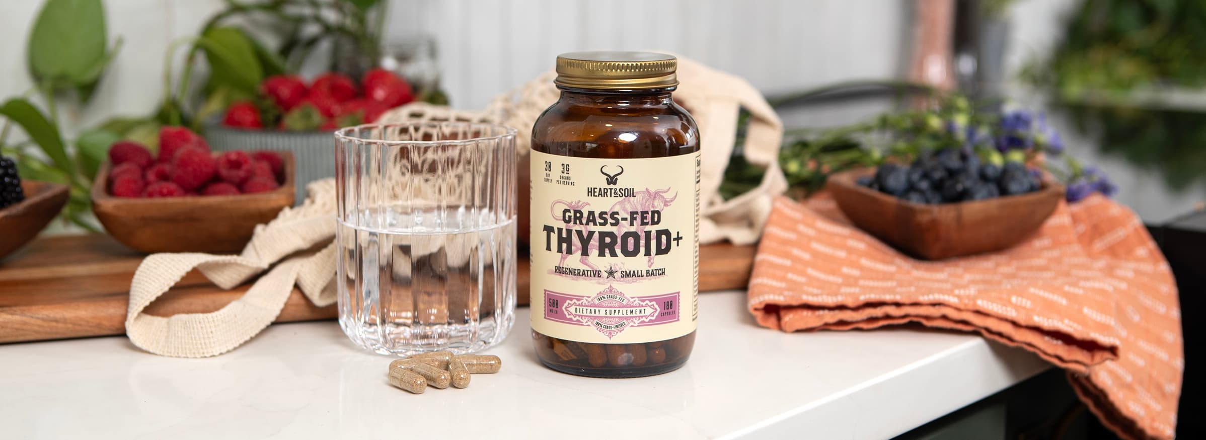 Grass-Fed Thyroid+ is specifically formulated to support healthy thyroid function, metabolic efficiency, energy, and overall well-being by delivering bioavailable nutrients sourced from premium-quality, 100% grass-fed organs.†