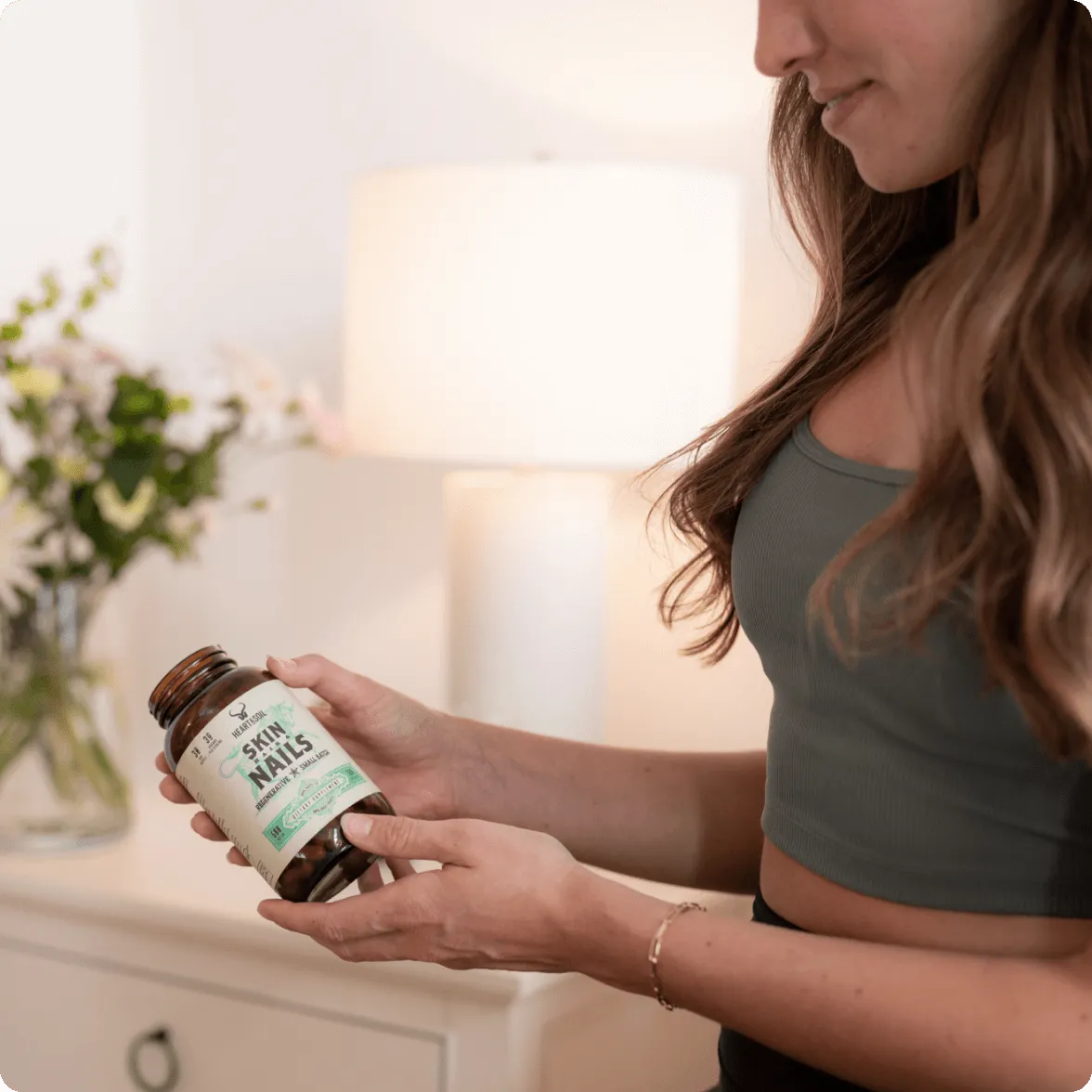 Skin, Hair & Nails is specifically formulated to help support thick hair, strong nails, and healthy, glowing skin by delivering bioavailable nutrients sourced from premium-quality, 100% grass-fed organs.†