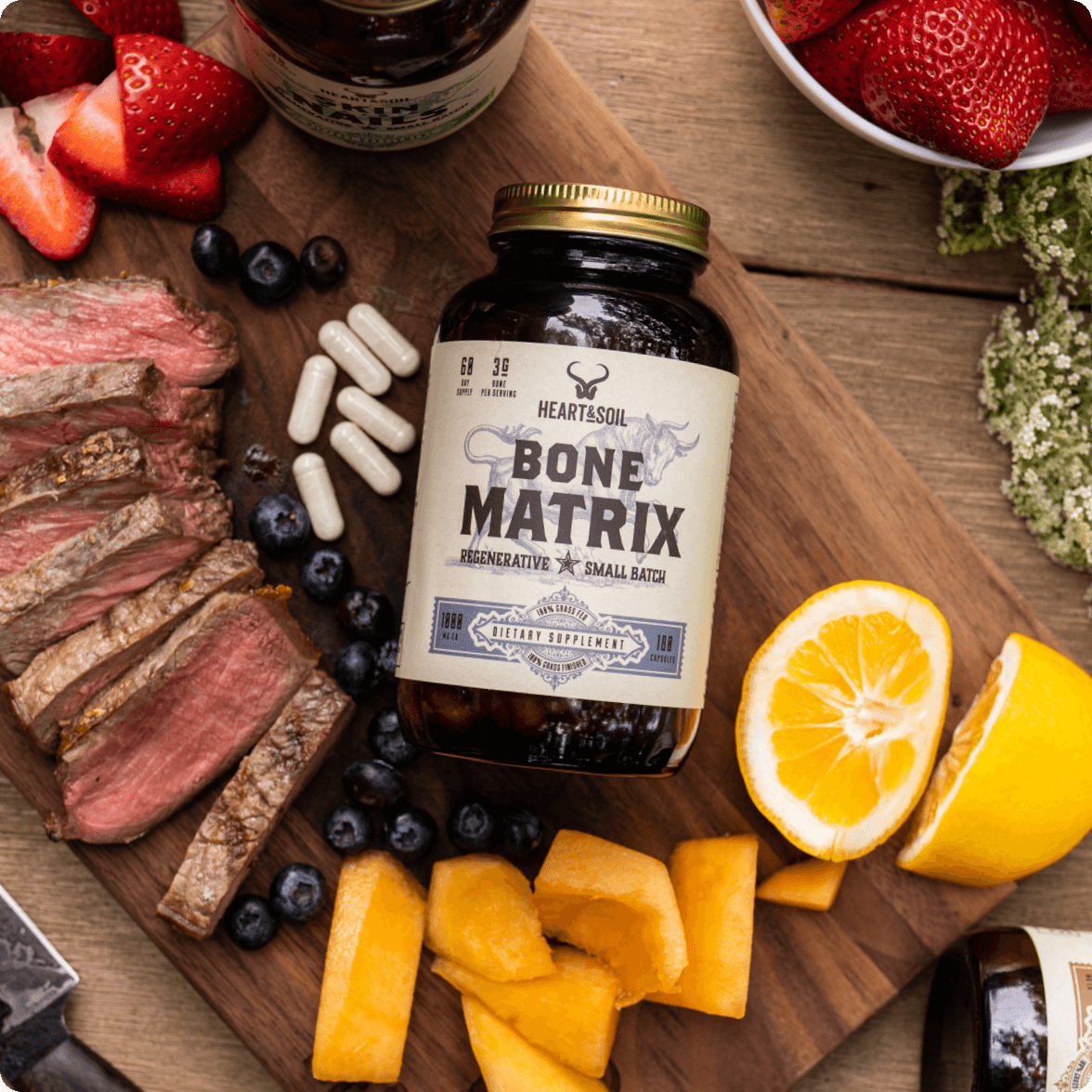 Bone Matrix is specifically formulated to support bone strength & mineralization, joint health, and connective tissue integrity by delivering bioavailable nutrients sourced from premium-quality, 100% grass-fed long bones.†