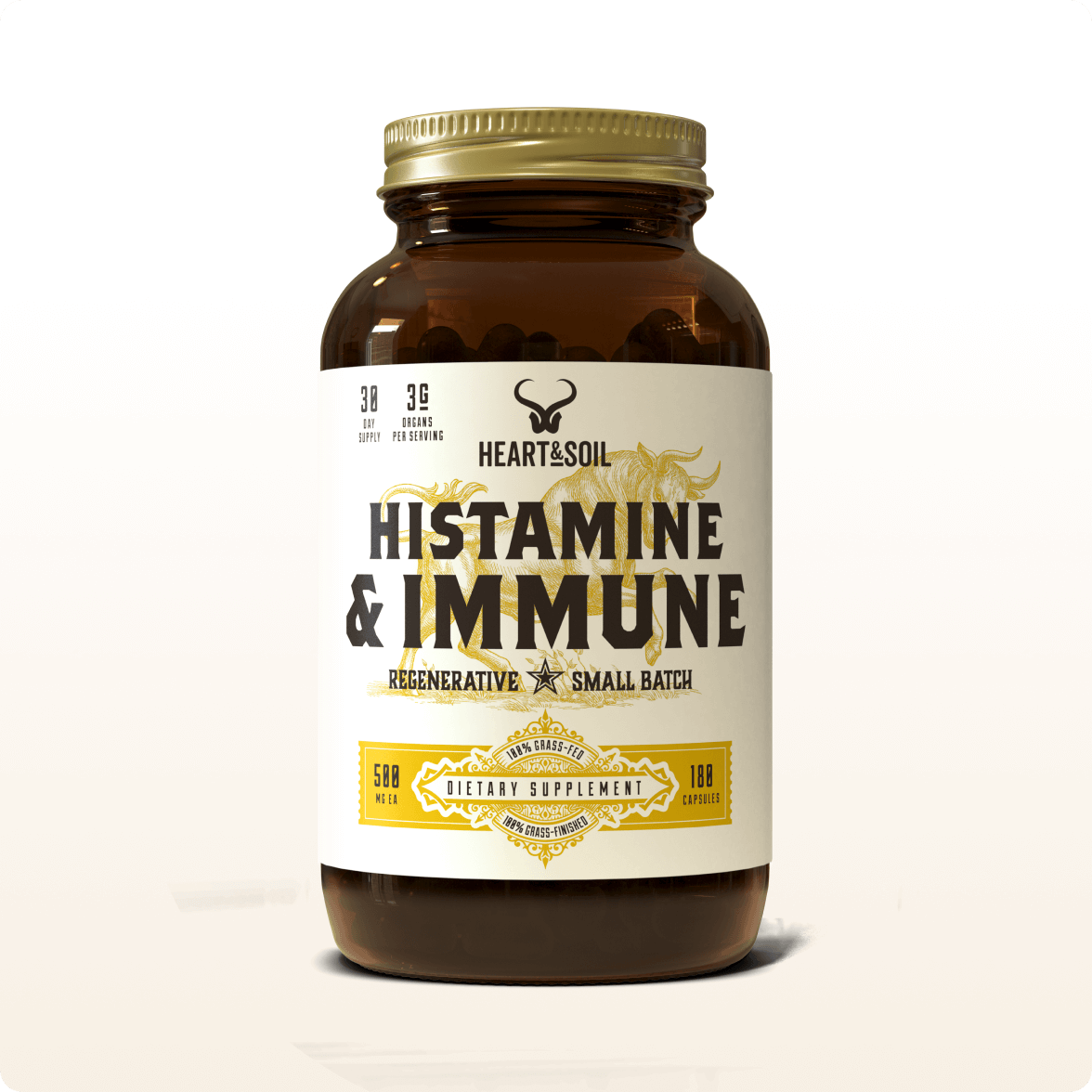Histamine & Immune is specifically formulated to support immune function, histamine metabolism, and seasonal wellness by delivering bioavailable nutrients sourced from premium-quality, 100% grass-fed organs.†