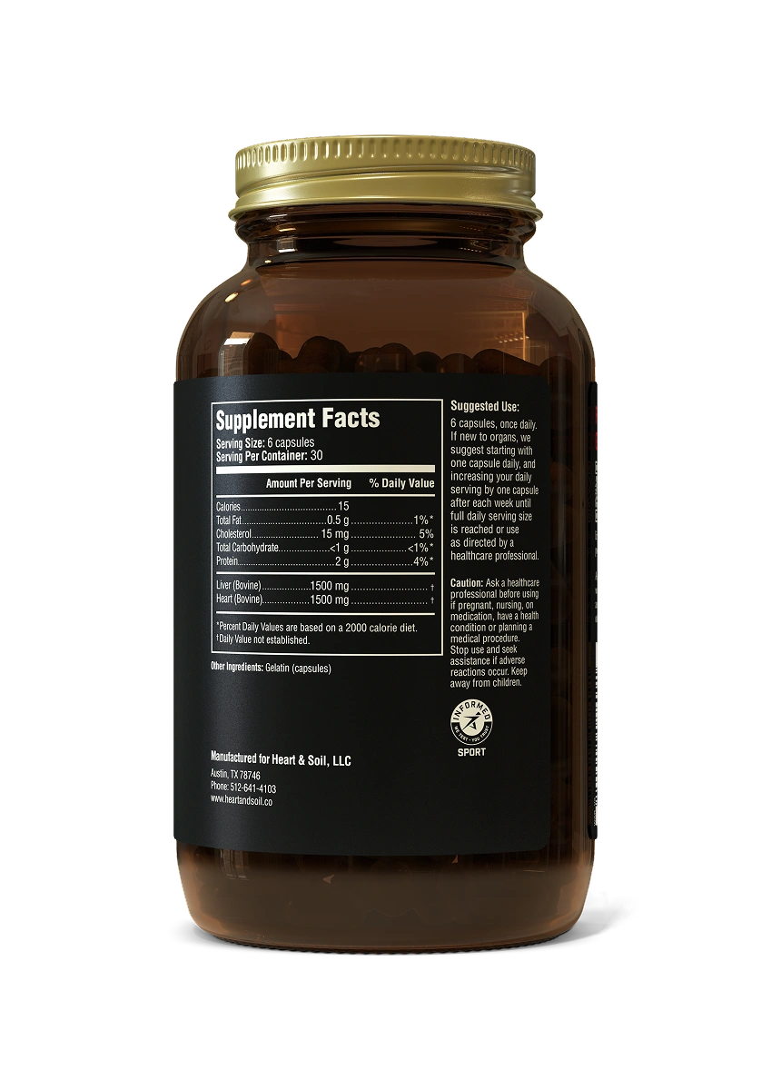 Each serving provides the equivalent of about 1/2 oz each of fresh heart and liver in easy-to-take, taste-free capsules. Ideal for all busy Warrior schedules.
